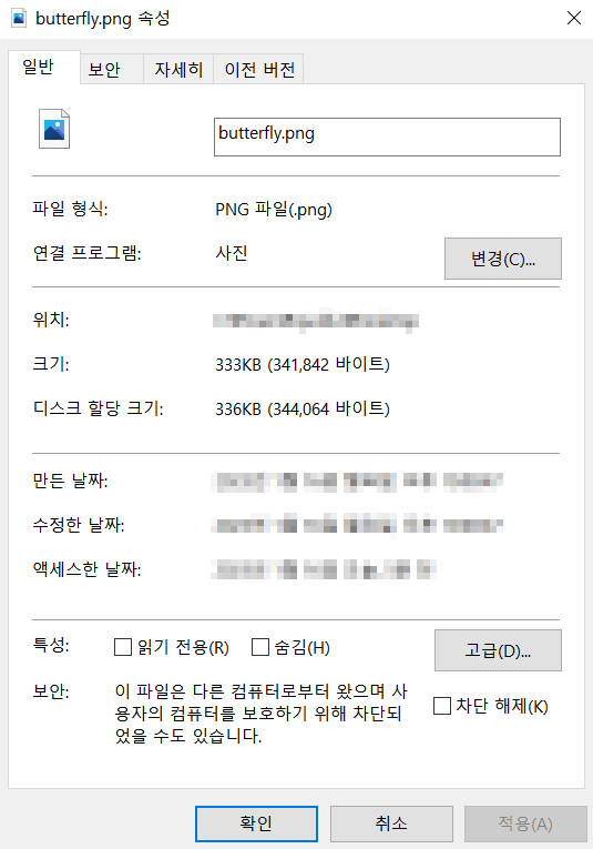 우선, 해당 문제의 속성을 보았을 때 파일 크기와 같은 데이터가 정상적인 데이터인지 확인하였다.