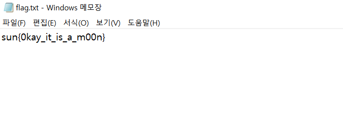 암호를 해제하기 위해 Hex 값 등등 살펴보았으나 존재하지 않아, 이번 문제의 이름인 moon을 입력하였을 때 정상적으로 압축해제가 이루어진다.