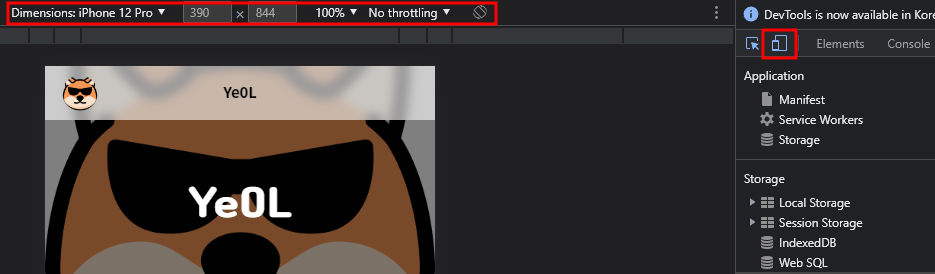 디바이스 툴바를 활용할 경우 현재 브라우저의 화면 비율 및 User- Agent를 원하는 값으로 변경할 수 있다.