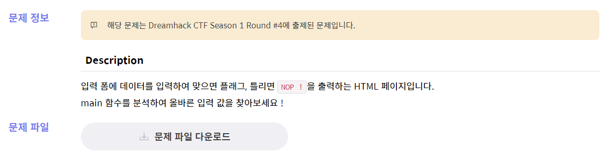 해당 문제에서는 index.html 파일이 주어지는 문제이다. index.html을 보고 분석한 후 문제에서 의도한 입력값을 입력하면 해결되는 문제이다.